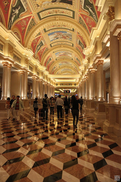 車開差不多十分鐘左右,我們就到了威尼斯人囉,一進大堂,迎面而來的貴氣及黃金色的裝飾,還有一大堆的來自各國的人。 我們到了威尼斯人後,因為我們等一下開始就要趕行程了,所以先去問了Check In的時間,基本上沒有時間限制,所以我們就等行程走完再回來Check In囉,只是若是想要住高樓層的話,建議還是早點Check In。 後來我們去寄了行李,行李寄放是不需要任何證明,只要行李給他,他就會給你一張紙,到時候再回來領就可以了,非常方便,再寄完行李後,我們就開始跑行程囉,第一個行程就是「新口岸葡式餐廳」,這家店位於威尼斯人的美食街,所以我們就要先從大堂這邊,走上去L03 ,到了L03後就會看到非常有名的天空,及大運河河川,以及貢多拉船。本來我覺得那個天空畫的再真實~應該也會很假,沒想到做的還蠻真的,有一種傍晚的感覺,一上來的第一件事情,就是找我們的午餐囉,因為這裡很大且很容易迷路(整路景都長的很像),所以我們就去查了導覽器,再繞了一下,總算找到了。 因為是在美食街,所以就像是台灣的美食街一樣,自已找位子坐,而此餐廳吃完後的感想就是一般般,我也吃不出葡式菜有什麼特別的,所以吃完後,我們就跳上的士,前往「媽閣廟」囉。