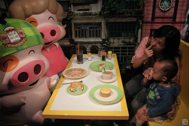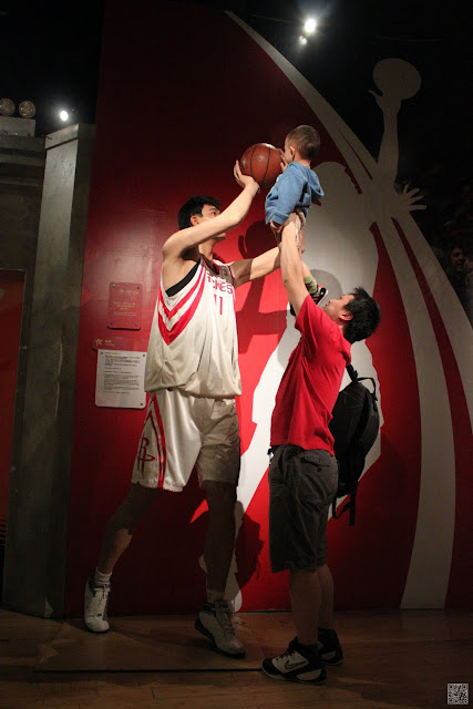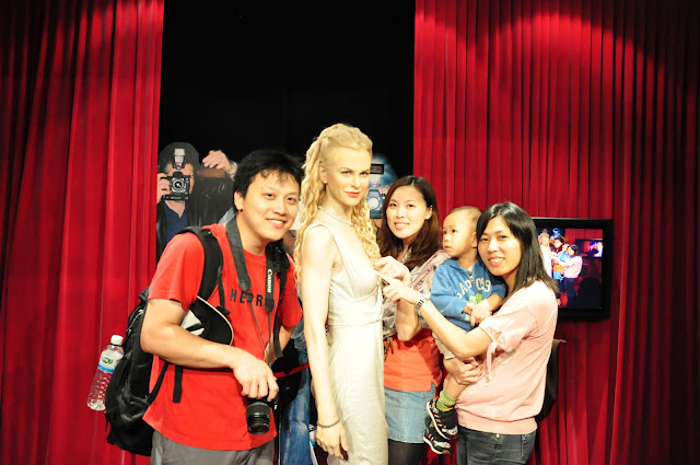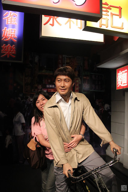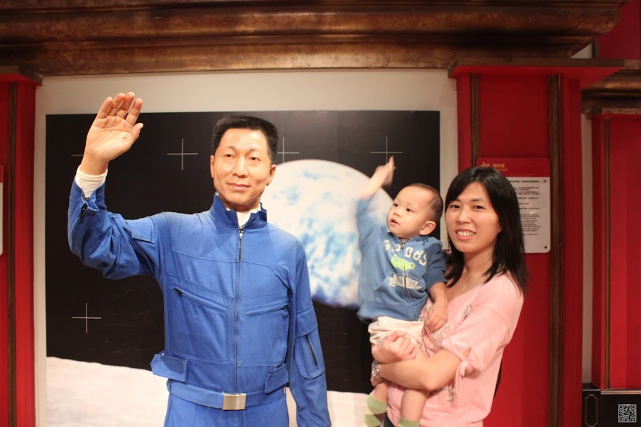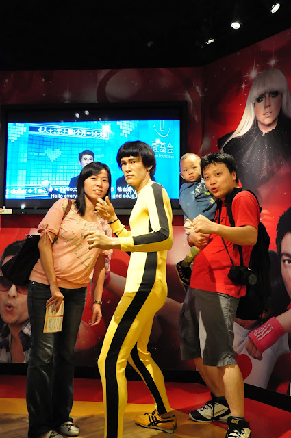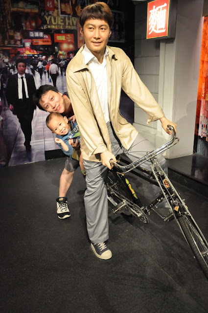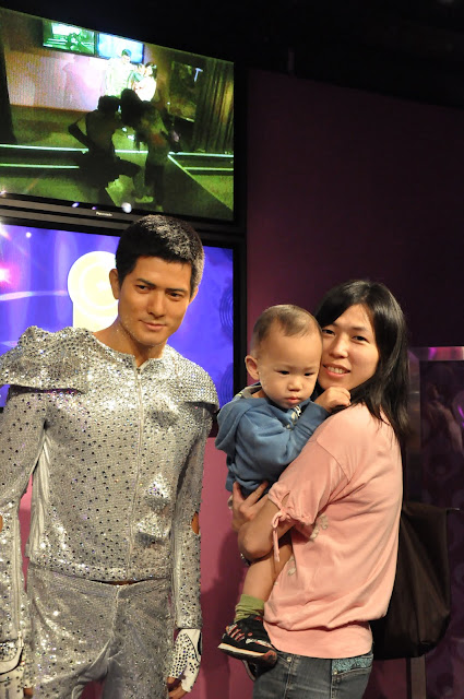 因為我們在台灣買的票券是三合一的票,包含纜車、凌霄閣和蠟像館,所以在七點半左右我們去換了票進去蠟像館參觀,所有的蠟像都做的栩栩如生,但是倒沒有什麼特別讓我覺得印象深刻的,只是皓皓和媽媽在和劉德華蠟像合照的時候,皓皓指著劉德華說”舅舅!!”(舅舅應該很開心吧!!只請布丁和養樂多也太小氣了!!)後來在和郭富城合照時,皓皓又指著郭富城叫著外公的名字(哈哈哈!!皓皓小小年紀還真會做人)。