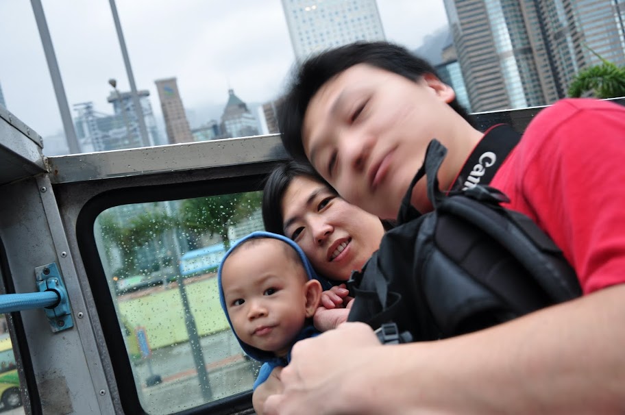 離開了Apple旗艦店,我們往天星碼頭的方向走去(從Apple旁邊的出口,直接去走戶外的高架人行步道,就會到了),因為我們要在天星碼頭的6-7號碼頭前面公車站,搭15C露天巴士前往山頂纜車站,等了差不多有15分鐘吧!!(司機好像是去大便,車丟在這人就不見了,10鐘後才出現)終於要發車了,雖然如我們所願的是台露天巴士(來的時候剛好有一台不是開頂的走掉,建議沒下雨的話就等有開頂的再搭),但是上去後沒有多久,雨越來越大,一群人很狼狽的趕快回到一樓,哈哈哈!!!沒有想到一樓也在滴水啊~~~心想我們今天的運氣真的不是很好,前幾天的天氣都超好的,今天要上太平山看夜景,卻居然下起雨了。