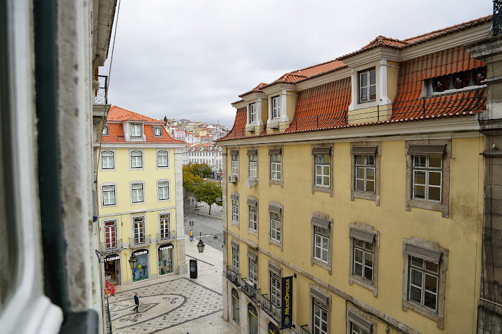 差不多搭了三十分鐘我們就到了羅西歐廣場(Rossio)了,沿路其實可以看一下里斯本的一些印象,整棟荒廢的大樓外牆,被那些街頭藝術的人噴成了一幅藝術品XD,超強~,可惜因為我在顧行李箱,完全沒辦法拿相機出來拍照,而且隨著巴士在開,就可以了解到這被稱為七丘之城的原因,小山丘非常的多呀。